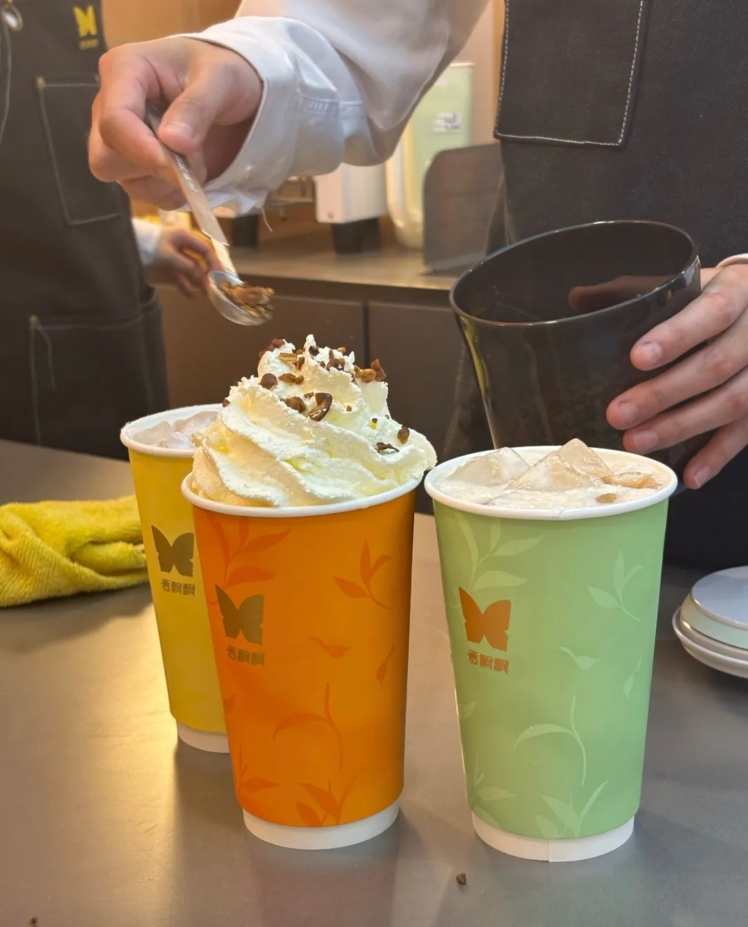 职餐《首店商业眼》栏目此前已关注到杭州大悦城的香飘飘首店围挡,此次双店同步开业,分别瞄准不同消费场景:大悦城店为商场体验店,侧重品牌焕新与消费者深度互动;清江路店为街边档口店,聚焦外带即时消费,主打运营效率与市场反馈收集。