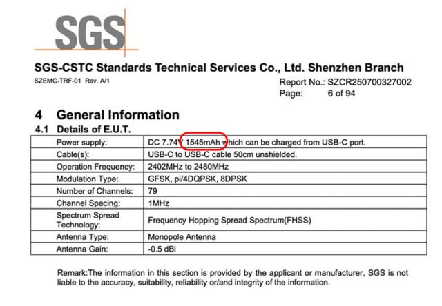 在数码产品领域,额定容量指特定测试条件下释放的最小容量,实际使用时容量通常更大,因此厂商常标注“典型容量”。大疆或为Pocket 4标注1600mAh甚至更高的典型容量数值。