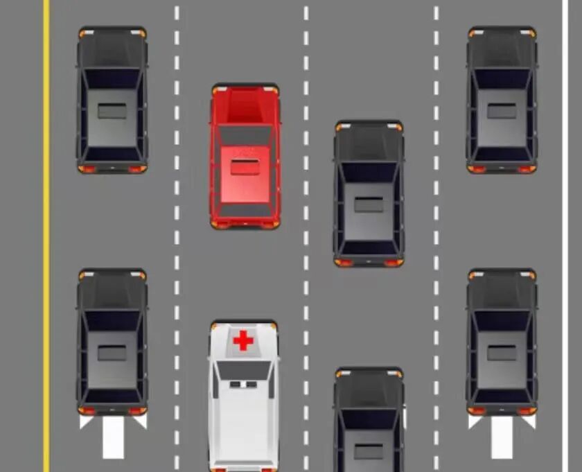4、当遇到后方有执行急救任务的救护车,且各车道排队缓行或交通拥堵时,前车应如何行驶?