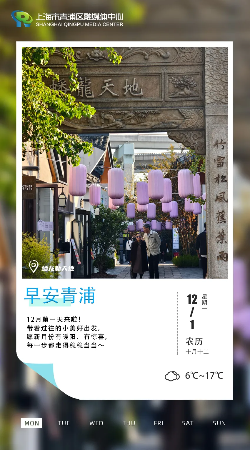 原标题:《早安青浦丨12月的第一天,愿你一切顺利~》