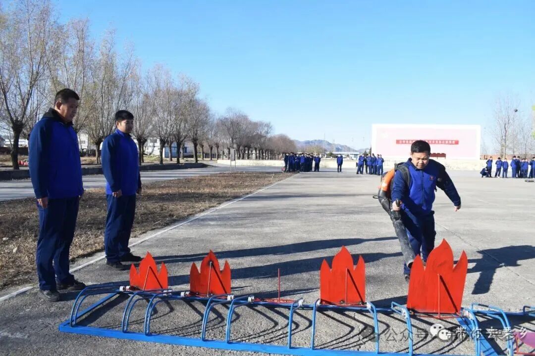 竞赛现场氛围热烈,加油声与掌声交织,让队员们热血沸腾。参赛队员们精神抖擞、斗志昂扬,全力投入比拼,展现出高超的技能素养和强劲的战斗力。在风力灭火机操作环节,队员们精准操控设备,快速吹倒火焰靶,动作流畅利落;铺设水带时,大家分工明确、配合高效,顺利完成比赛任务……