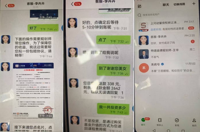 然而警方揭露,这些“感谢”和“到账截图”全是骗子一人分饰多角的“剧本秀”。随后,“客服”以“购买指定退费基金才能全额返还”为由,催促崔女士转账。