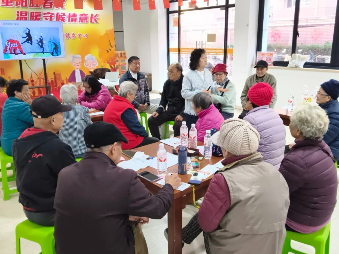 首个环节围绕“认识压力”展开,沈娴引入广泛性焦虑障碍量表这一专业心理学工具,让服务对象在纸上为自身近期状态打分。完成自评后,她顺势引导,通俗易懂地剖析了压力的常见来源及压力作用于身心的三种基本模式,并通过“OH卡减压之旅”,鼓励长者们大胆表达内心的喜恶,释放积压的困惑与压力。