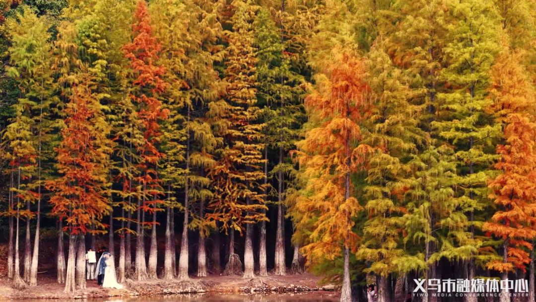 赤岸镇雅治街村的朝阳水库被称作义乌“小九寨”,成片水杉林让这里成了远近闻名的打卡地。入秋以来,水杉林进入“最美观赏期”,在这里,既能邂逅青黄交织、如油画般的深秋,也能遇见绯红一片的静谧初冬。