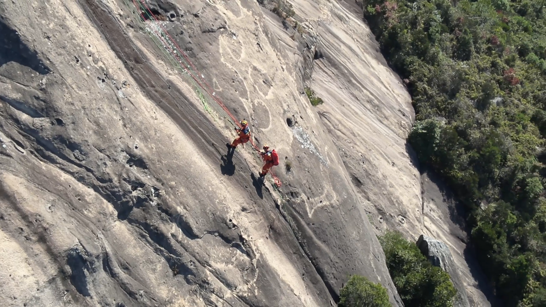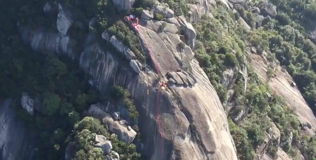 发现男子被困位置距离山顶约200米,崖壁近乎垂直