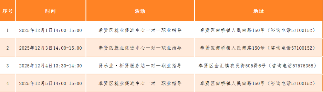 原标题:《奉贤区“15分钟就业服务圈”本周站点活动安排》