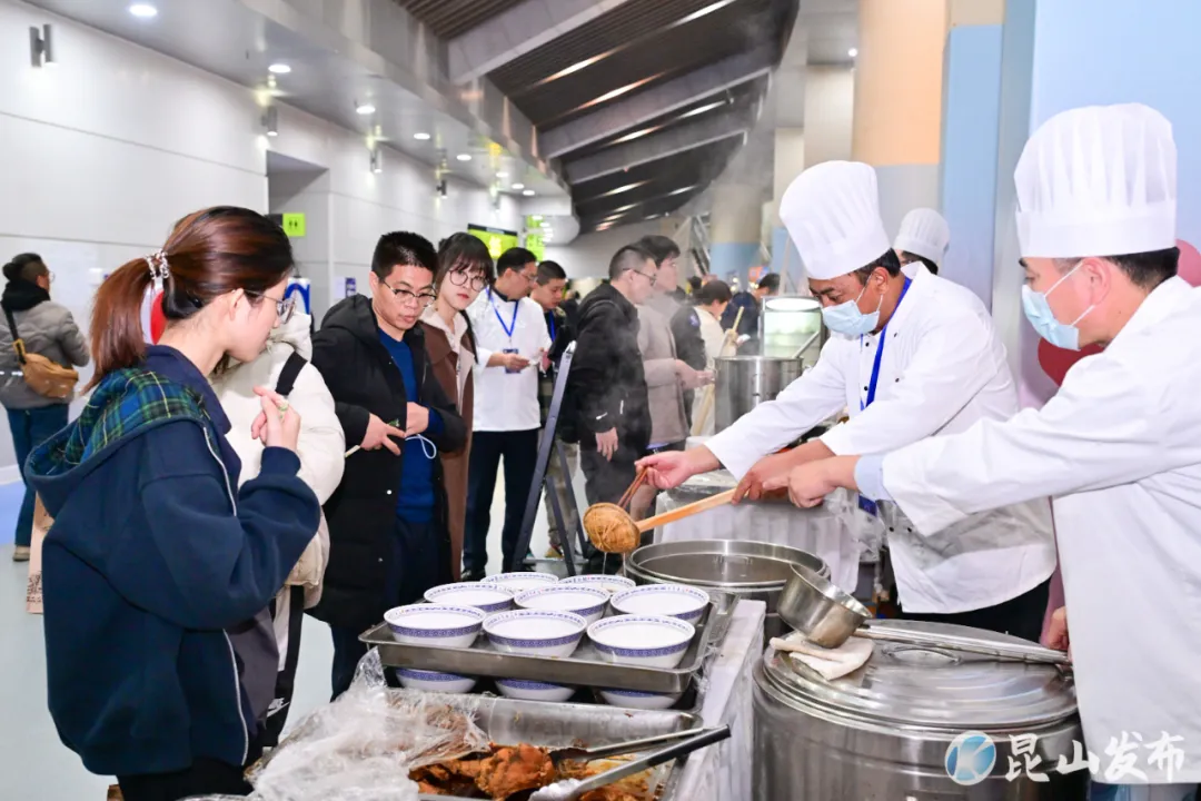 比赛期间,场馆周边还设置了融合昆山特色与运动活力的主题市集。市集上汇集了大闸蟹、奥灶面、谜豆包、石浦羊肉、锅贴等本地特色美食,更专门设立了咖啡区域,彰显出昆山“国际咖都”的独特气质。在文创区内,昆曲主题文创产品等特色好物琳琅满目,让观众在观赛之余,能够沉浸式地感受昆山深厚的文化底蕴与蓬勃的城市活力。
