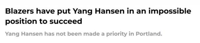 尽管开拓者今年夏天通过交易得到朱·霍勒迪,表现出“重视即战力”的态度,但总经理克罗宁仍坚持球队要采取长期重建的策略。考虑到开拓者目前胜率不足50%,在强队众多的西部不具备真正的季后赛竞争力,这个思路本身没什么问题——可既然如此,为什么不给杨瀚森更多机会呢?