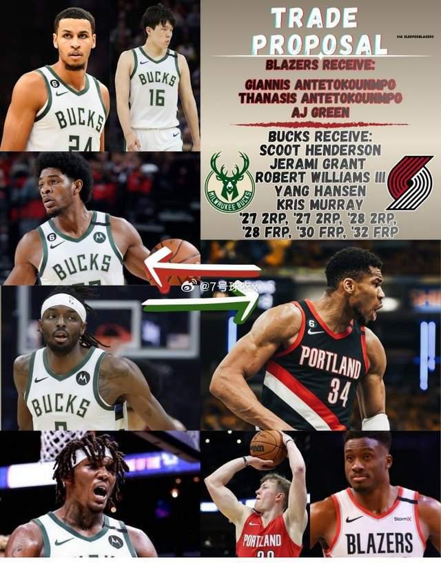 这笔交易的具体模拟内容为:开拓者将得到字母哥、萨纳西斯·阿德托昆博(字母哥哥)以及格林;雄鹿则收获亨德森、格兰特、罗威、杨瀚森、穆雷,外加2028年、2030年、2032年的首轮签,以及两个2027年次轮签和2028年次轮签。