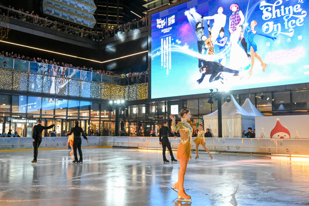 上海陆家嘴中心L+Mall下沉广场化身为冰雪舞台,欧美及中国的顶级冰舞艺术家与花样滑冰世界奥运选手、冠军名将相继登台。冰刃在透明冰面上划出交错的光影,脚边飞溅的冰屑与舞者擦身而过的风声相互交织,营造出极具沉浸感的观演氛围。整场冰舞表演让广场变成了一个充满真实质感的“沉浸式冬季剧场”,也使这座城市广场成为浦东今冬最受瞩目的风景之一。