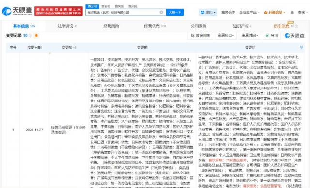 此次变更中,东方甄选(北京)科技有限公司的经营范围有所拓展,新增加了餐饮管理、外卖递送服务以及餐饮服务等项目。