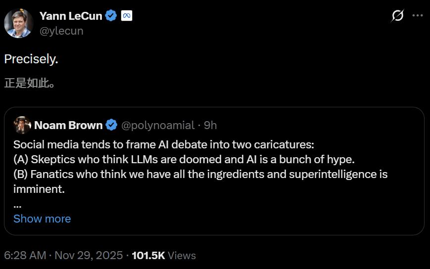 他认为,当下社交媒体常将AI辩论简化为两种极端刻板印象: