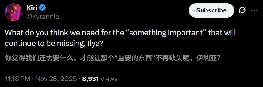 那么问题来了,Ilya所说的‘关键缺失’究竟是什么?