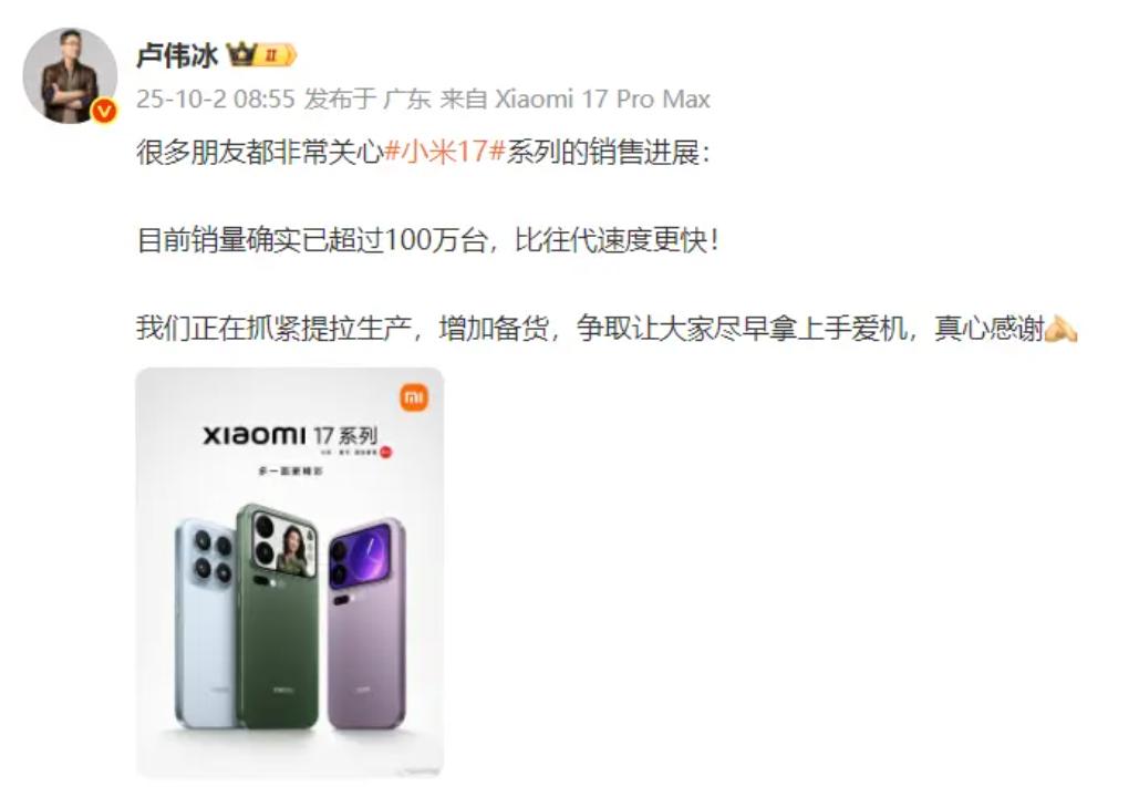 先看小米:今年小米数字旗舰系列发布时间比往年提前一个月,原本赶上双十一的首销期提前至10月。卢伟冰10月2日宣布小米17系列销量突破100万台,与小米15系列速度相仿。CounterPoint的数据统计从10月20日开始,10月2日至10月20日期间卖出的小米17未被统计,这部分销量被忽略。此外,小米17系列在双十一降价幅度小,仅平台有两三百元补贴。小米控价策略更稳健,意在塑造高端形象,但也让部分注重性价比的用户选择等待。