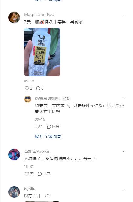 食品工业人士分析,白桦树汁原料价从约1700元/吨炒至6000元/吨,涨幅达3倍。无自有产业链的品牌需外部采购,导致价格虚高。