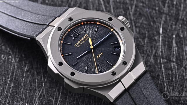 该腕表盘面为“伯尔尼纳岩灰”配色,放射纹设计形似“鹰眼虹膜”,这也是系列设计灵感来源。搭载的Chopard 01.14-C型自动上链机芯部分零件(如夹板)采用瓷化钛材质,在57600次/小时高振频下仍实现60小时动储,凭借此优势荣获今年日内瓦钟表大赏“最佳运动腕表”奖。