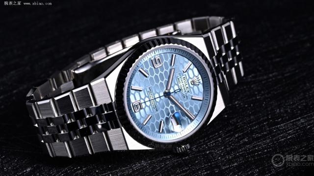 劳力士2025年重返豪华运动表领域,推出阔别半个世纪的陆使型新品。其设计灵感源自上世纪70年代的“蚝式石英”腕表,融入现代审美元素:40毫米表壳搭配品牌标志性贵金属三角坑纹表圈,部分型号采用激光切割蜂巢状凹陷图案的条纹打磨表盘,细节质感丰富。