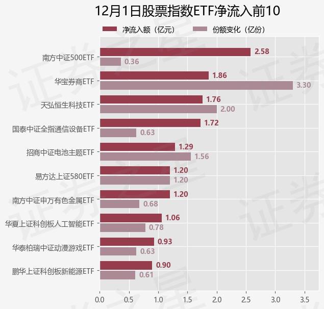 具体来看,当日有141只股票指数ETF基金实现资金净流入,其中南方中证500ETF(510500)净流入金额最高,份额增加了3600.0万份,对应净流入额为2.58亿元。