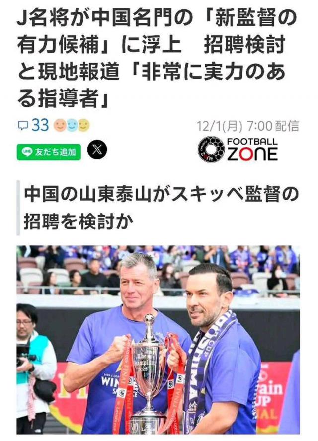 目前,山东泰山队尚未对日媒的报道作出官方回应,斯基贝本人也未透露下一步执教计划。