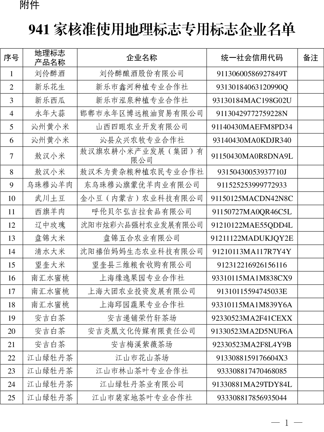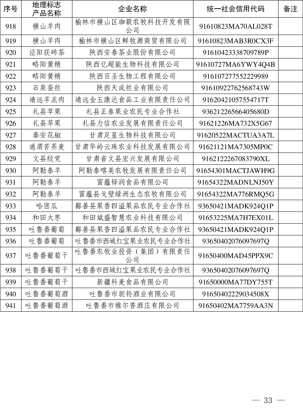 依据《地理标志产品保护办法》,靖远羊羔肉、礼县苹果、秦安花椒、通渭苦荞麦、文县纹党等170个产品对应的941家企业,已分别向产品所在地的知识产权管理部门提交地理标志专用标志使用申请。经过相关省级知识产权管理部门的审核,以及国家知识产权局的审查认定,现对这些企业予以注册登记。从即日起,核准上述企业在其生产的地理标志产品上使用地理标志专用标志,这些产品将获得地理标志产品保护。
