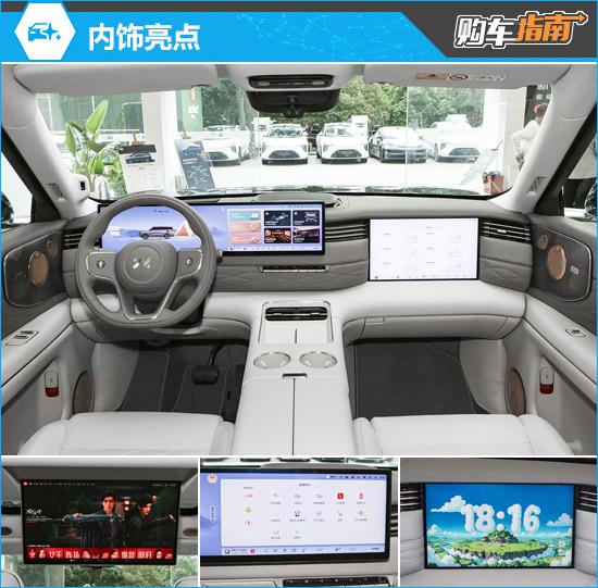 内饰采用科技与豪华融合的设计风格,配备多块高清屏幕:27.1英寸中控屏集成仪表功能,搭载高通骁龙8295P芯片与IM AIOS系统,支持CarPlay、HUAWEI HiCar互联;15.6英寸副驾娱乐屏、21.5英寸后排液晶屏满足全车娱乐需求。用料方面,座椅采用IM Nappa DELUXE臻奢真皮,门板处配有巴洛克渐变浮雕绗缝与皇家礼赞艺术木纹饰板,奢华感十足。