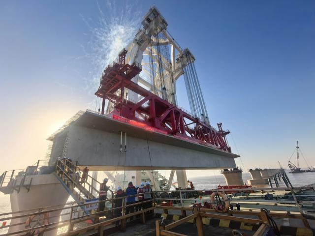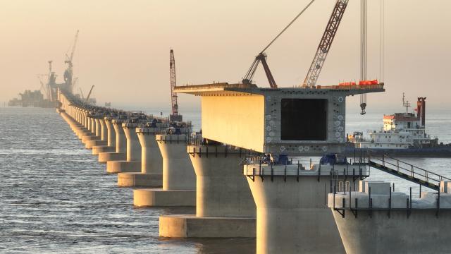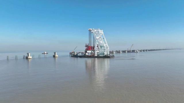宁波至上海1小时可达!通苏嘉甬高铁杭州湾跨海铁路大桥宁波侧首孔箱梁成功架设