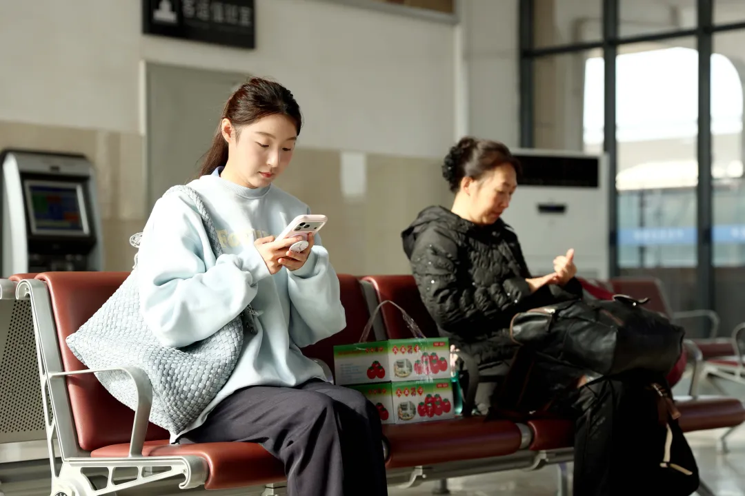 车站服务台免费提供胶带、剪刀和塑料袋,帮助旅客加固火晶柿子的包装箱。同时,工作人员还会及时解答外地旅客关于交通接驳和景区游玩的问题,努力提升大家的出行体验。