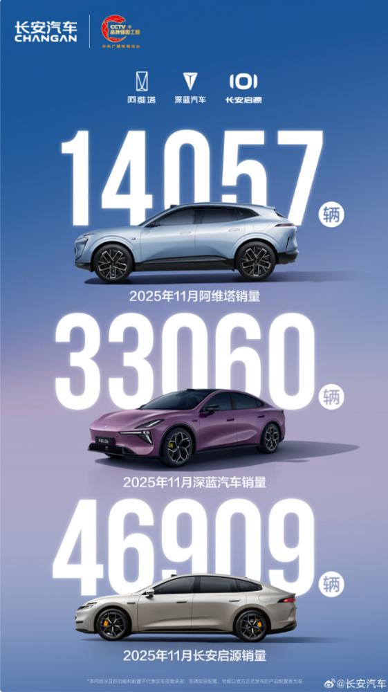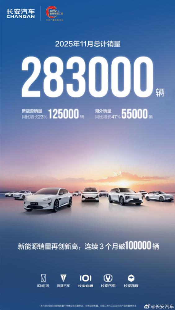 长安汽车11月新能源销量再破纪录 连续三月超10万