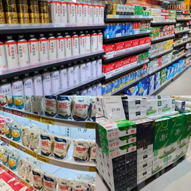 当然,面对不同区域市场,每家商超的商品策略各有不同。就像欢乐爱家店内大流通货的商品占比更多,比如乳制品常见品牌包括花花牛、君乐宝、蒙牛、伊利等,这主要是为了服务好本地的民生消费需求。