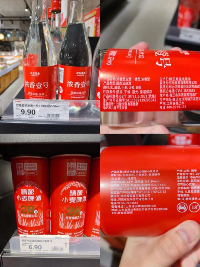 比如,欢乐爱家德式精酿小麦啤酒的供应商为山东绿洲啤酒有限公司,这也是淘小胖、华豫佰佳的同款供应商;"浓香壹号"52度浓香型白酒的供应商为宿迁市洋河镇苏冠酒厂,是奥乐齐和南阳万德隆的同款供应商。