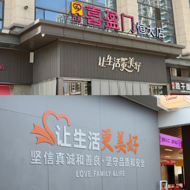 图:上为喜盈门超市恒大店,下为欢乐爱家惠选超市八中店