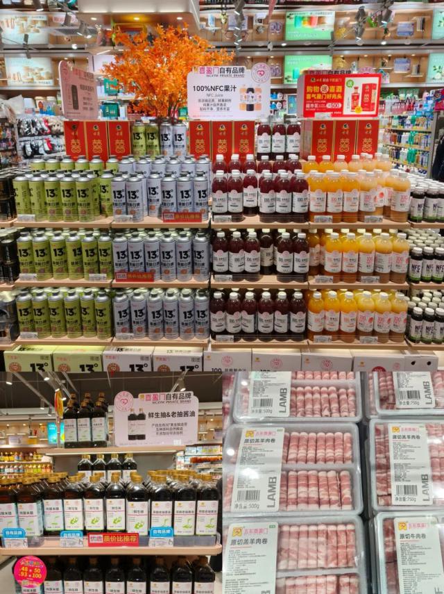 虽说业内头部供应商或合作方会被更多商超选择,但从自营商品的数量和规模来看,不仅与省内其他优秀商超相比,即使和本地同类新商超"喜盈门"对比,欢乐爱家也有短板待补齐。