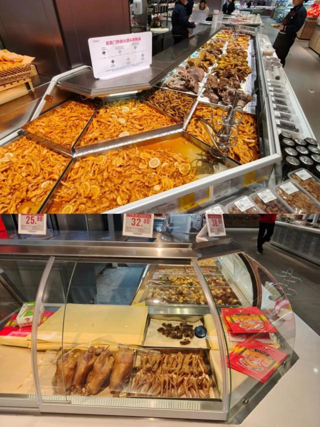 另一个值得关注的细节是,喜盈门超市熟食区展示柜特意撤去"玻璃罩",让消费者能更直观看到工作人员的操作流程与食材状态,这种"无遮挡"的呈现方式,进一步强化了新鲜与信任感知。可以说,这些细微的运营差异,往往会直接影响消费者的到店体验与心理偏好。