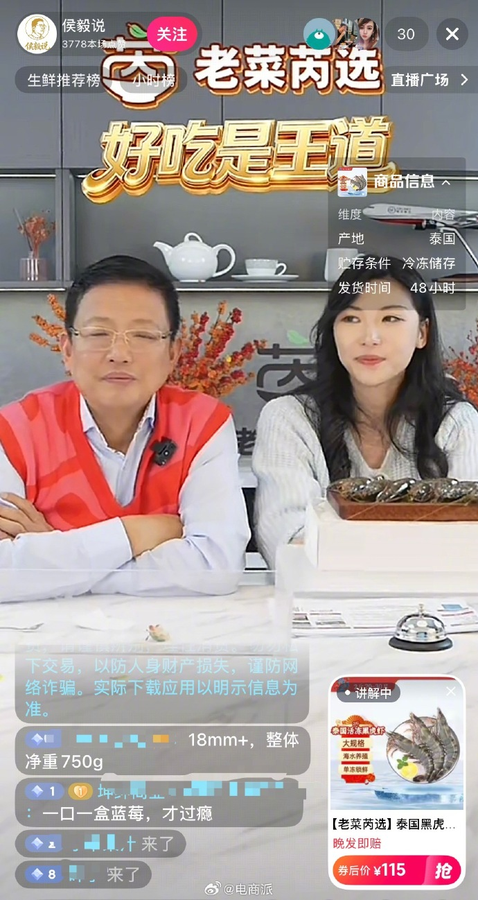 近日,盒马鲜生创始人、前CEO侯毅推出全新创业项目“老菜芮选”,并以直播带货形式回归大众视野。首场直播中,侯毅亲自上阵讲解产品,涵盖面点烘焙、水果、海鲜水产等品类,包括桐香雪花乌老面小笼包、智利4J级车厘子原箱、泰国黑虎虾、云南高山蓝莓等商品。