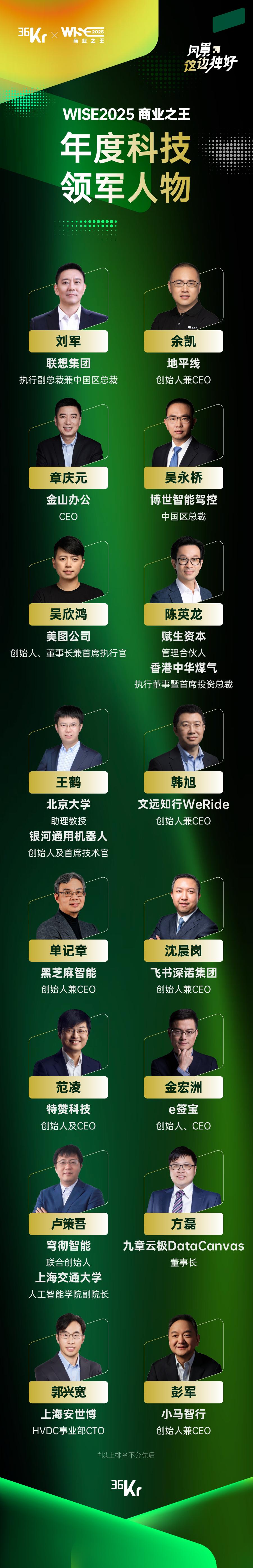经过前期报名征集、内容推荐,以及多轮遴选、评审,并结合专业分析师的意见,我们特别发布“WISE2025商业之王年度人物系列名册”。