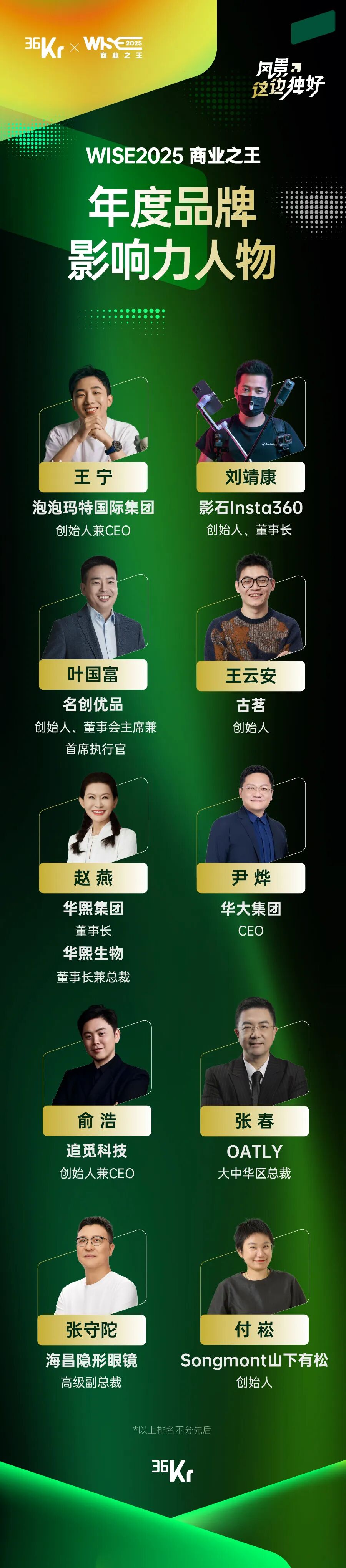 以下是“WISE2025商业之王年度品牌影响力人物”: