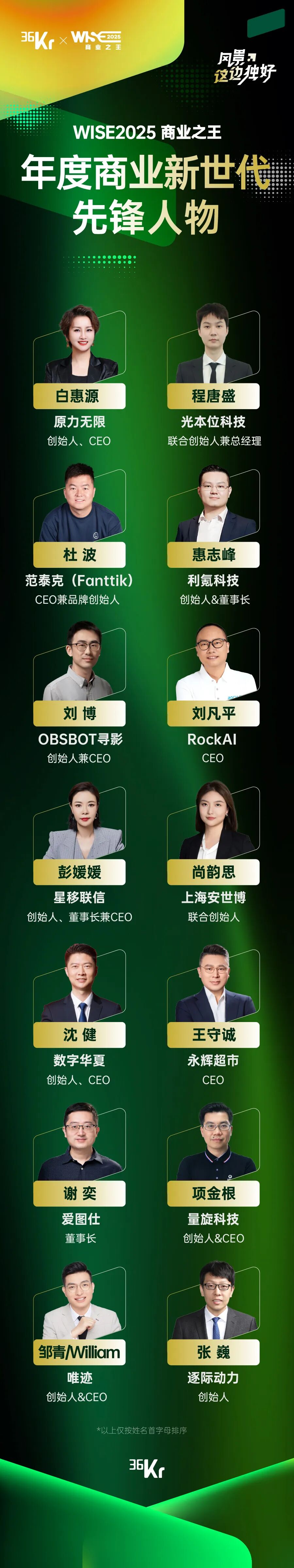 以下是“WISE2025商业之王年度商业新世代先锋人物”: