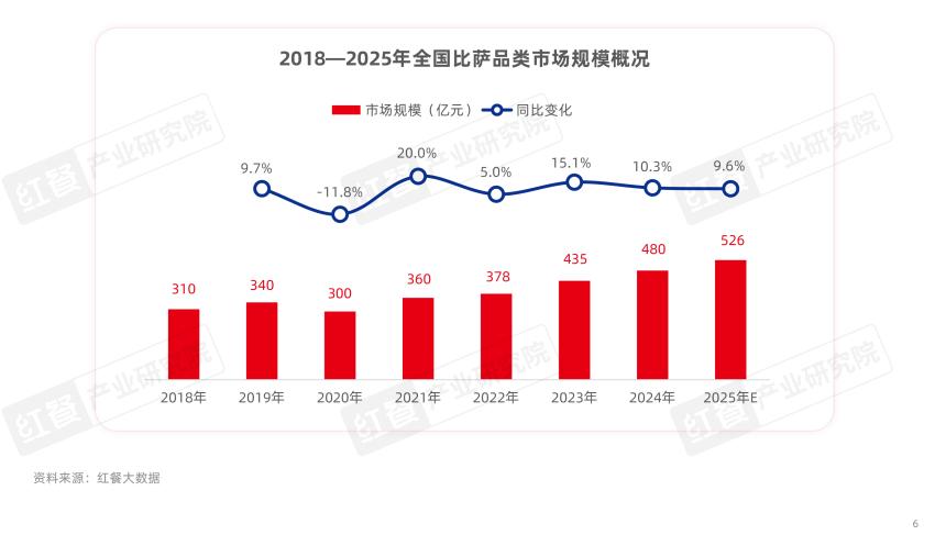 一方面,披萨品牌在产品价格上越来越注重性价比;另一方面,下沉市场成为了品牌们拓展市场的主战场。在这双重因素驱动下,比萨品类市场规模保持着稳健增长态势。红餐大数据显示,2024年全国比萨品类市场规模达到480亿元,同比增长10.3%,预计2025年比萨品类市场规模将超过500亿元。