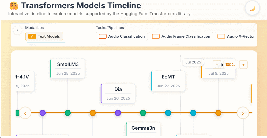 在过去 5 年里,平均每周新增 1–3 个新模型,时间线如下图所示:
