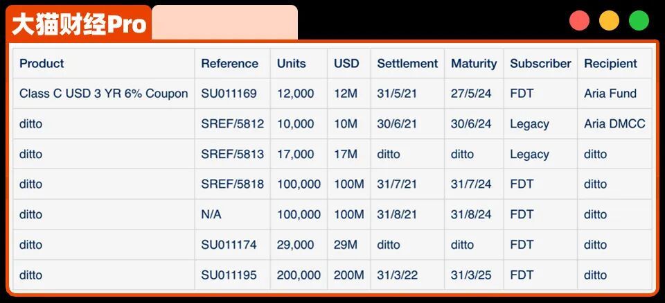 在股东交接过程中,两家信托公司完成了储备金的转移。随后,新信托公司与新加坡一家理财公司签订了“全权委托投资管理协议”,将4.7亿美元投向开曼群岛Aria基金发行的美元债,资金通过6笔转账进入迪拜的Aria DMCC公司账户。