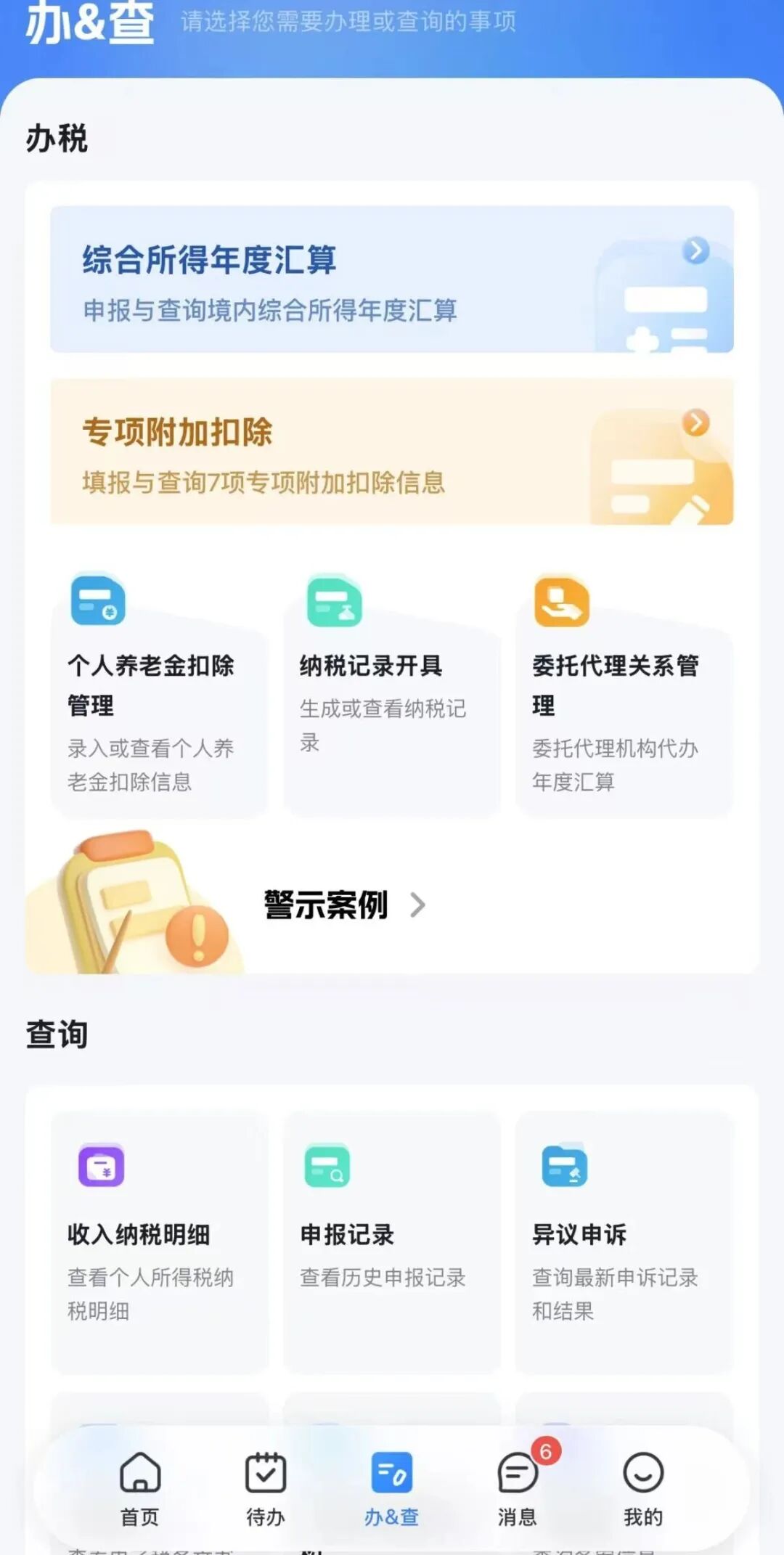 1.打开「个人所得税APP」,点击「办&查」。