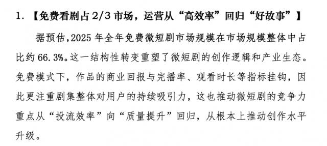 这种转变背后,政策监管与商业模式革新是关键推手。《中国微短剧行业发展白皮书(2025)》显示,免费微短剧已占市场规模的2/3。免费模式下,平台靠广告变现,制作方依赖分账收入,倒逼内容质量提升——用户迁移成本为零,剧情、画面、演技缺一不可。