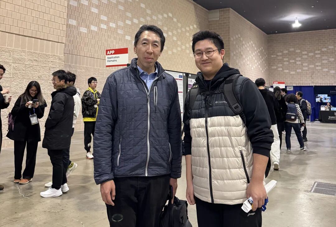 钱承炫(右)与美籍华裔计算机科学家吴恩达合影