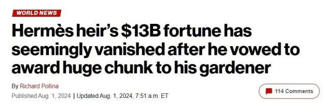 作为奢侈品顶端的爱马仕,其家族继承人竟落魄到需亲友接济,出行挤廉航经济舱,疑似被卷走150亿美元资产,而涉嫌行骗者还意外身亡?