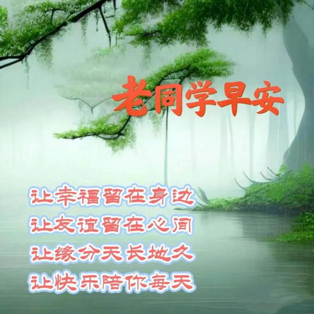 老同学,一送清晨的问候,二送美好的祝愿,三送吉祥无忧愁。再送健康、美好、幸福与平安,愿你童心永在,天天都有好心情!每日的约定是心灵的呼唤,每日的留言是心语的流露,每日的问候是心意的牵挂。心在、缘在、友谊在!