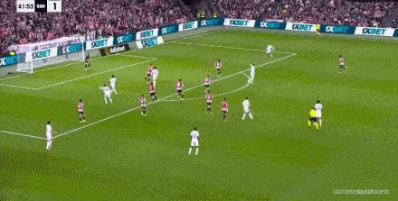 下半场姆巴佩依旧保持强劲势头。第59分钟,皇马在前场左路组织进攻,卡拉雷斯分球给姆巴佩,后者在大禁区外得球时,对手未能及时贴身防守。姆巴佩观察禁区形势后,原地摆腿再次轰出一记精彩世界波,对方门将只能望球兴叹!皇马3-0锁定胜局。
