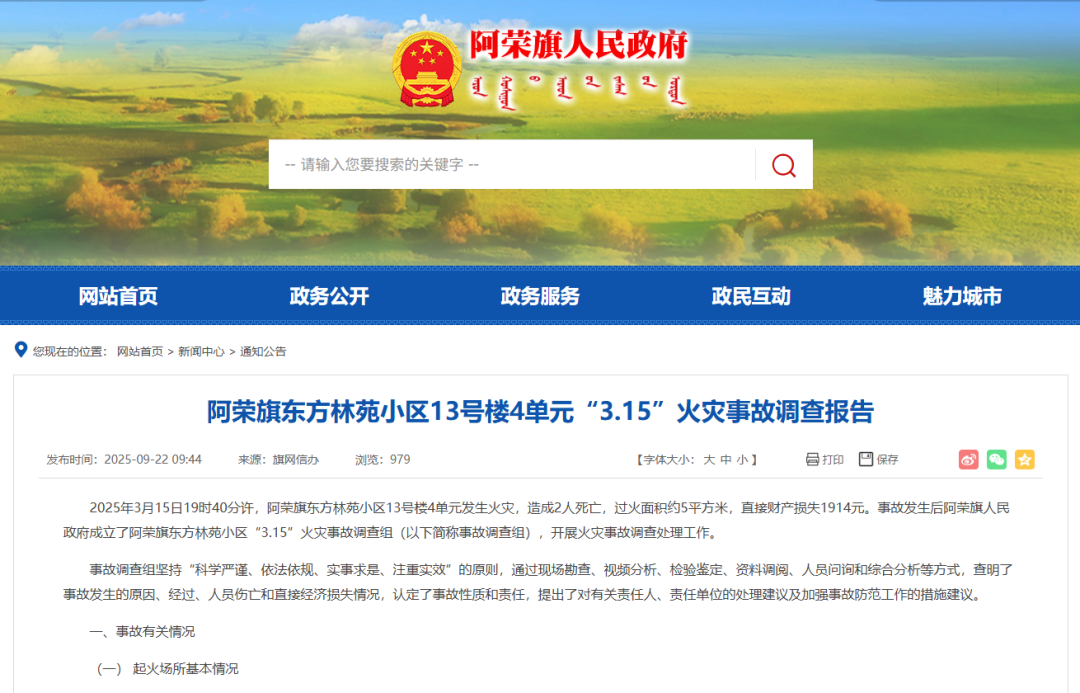 2025年3月15日19时40分,内蒙古阿荣旗某小区13号楼4单元楼道内,一场由微小隐患引发的火灾骤然发生——过火面积仅约5平方米,却无情夺走了两条宝贵生命。