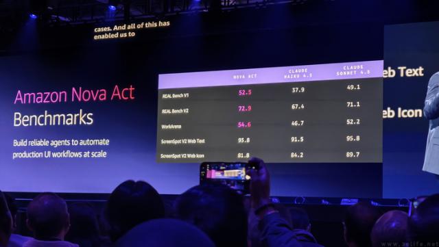 没错,尽管AWS昨日已发布三款主打“可升级”“可长期稳定运行”的新一代自研AI模型,但在此次主题演讲中,还揭晓了专为企业办公场景打造的大模型Amazon Nova Act。