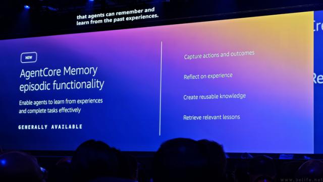 但这些还不够。近日,AWS正式推出AgentCore Memory情景式功能,首次让AI智能体具备了从过往“工作经验”中自主学习、提升效率的可能。例如,用户使用AI智能体预订机场接送服务且准时抵达后,下次再用同一智能体预订时,它会意识到“上次的时间刚好”,并根据旅行人数等数据变化主动预留更充裕的时间。