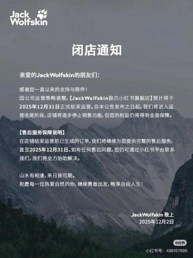 2025年12月2日,狼爪官方发布闭店公告,宣布因品牌运营策略调整,其小红书旗舰店将于2025年12月31日正式停止运营。公告明确表示:“自公告发布之日起,店铺将逐步停止销售功能,但消费者的合法权益仍会得到全面保障。”